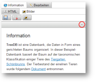 Der Knotentyp WIKI verfügt über einen eingebauten HTML-Editor mit umfangreichen Formatierungsmöglichkeiten. Durch Klicken der Schaltfläche Pfeil nach unten, siehe Screenshot roter Kreis ...