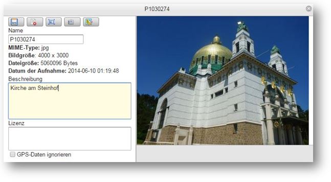 In diesem Kontext eine Erläuterung des Kontrollkästchen GPS-Daten ignorieren: Da die GPS-Einheit einer Kamera funktionsbedingt unter Umständen die richtigen Koordinaten erst mit großer Verzögerung anzeigt, besteht die Möglichkeit, dass die gespeicherten GPS-Daten nicht mit den wirklichen Koordinaten des Bildes übereinstimmen. Ist dieses Kontrollkästchen gesetzt, so werden die GPS-Daten ignoriert.